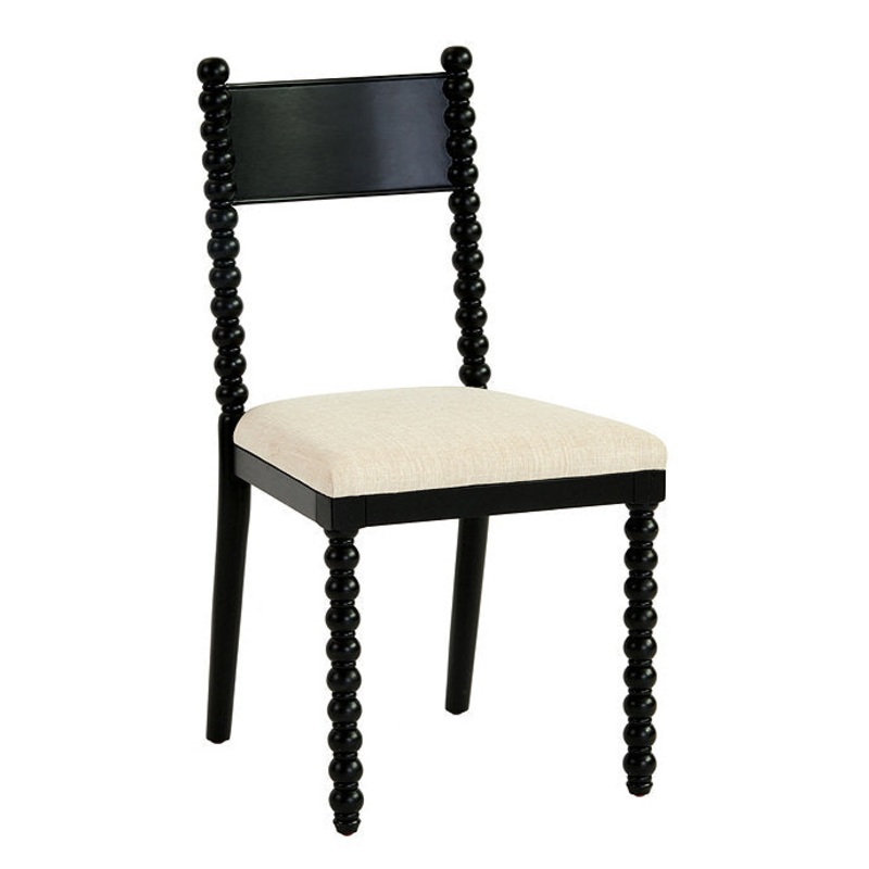 A fresh take on the classic spool silhouette. Our Livia Spool Chair features traditional turned spool texture on the front legs and back rails, while the back is smooth and contoured for extra comfort. Padded natural linen seat removes for easy re-covering