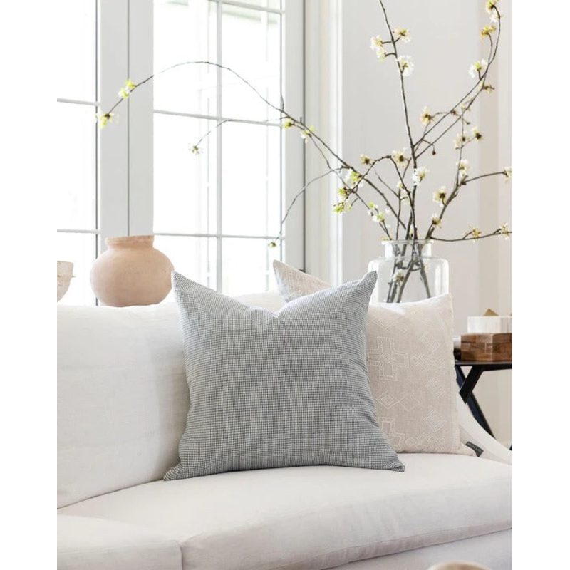 Featuring a classic color palette of blue and cream, our Luther Pillow Cover is the perfect textile to mix and match. With a smaller take on a standard grid pattern, this pillow blends easily with both florals and solids, adding crisp dimension to your sof