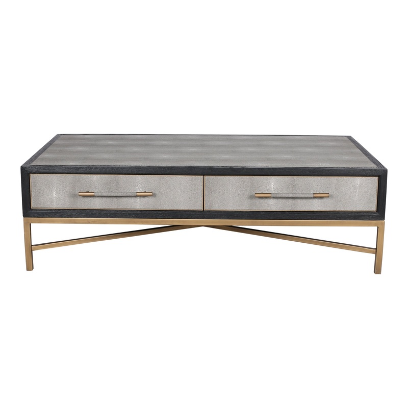 Luxe Art Deco Slide-Out Coffee Table with Vegan Leather Shagreen