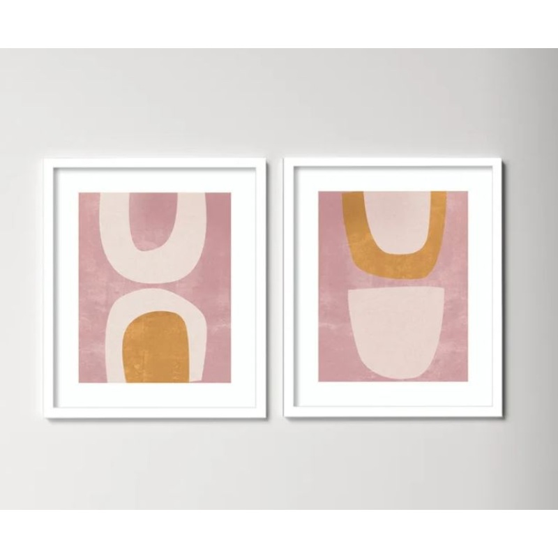 With its use of abstract shapes and warm, pink-toned color palette, this 2-piece graphic art print set adds an unexpected focal point to your walls. Printed in the USA, this set by artist Melissa Wang features two compositions with bands of pink and gold i