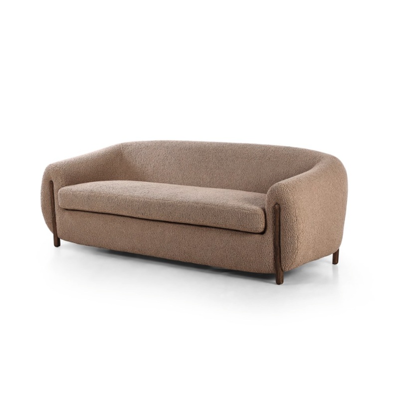 A fresh, elongated take on the traditional tub chair, with exaggerated depth for drama and comfort. Solid wood legs intersect sheepskin upholstery on this plush sofa for clean contrast and scale.Overall Dimensions: 86.50"w x 34.50"d x 28.00"hSeat Depth: 24