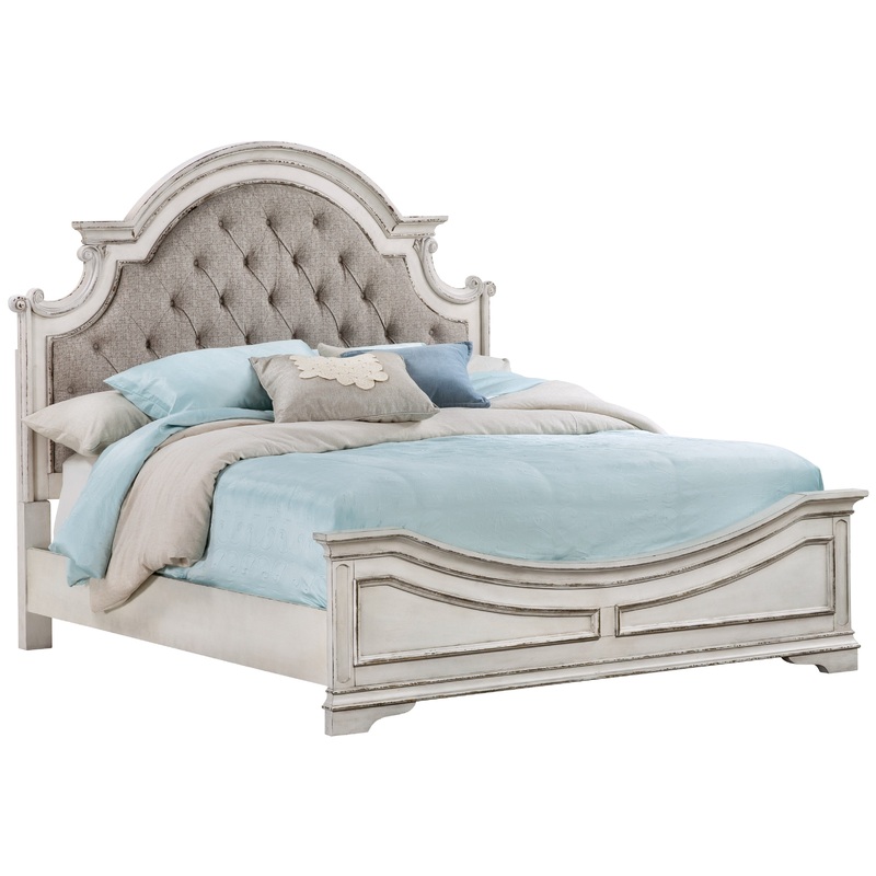 There's nothing like retreating to your bedroom haven at the end of the day, or spending lazy weekend mornings in serene surroundings. The Magnolia Manor Upholstered 4 Piece Room Group lets you do exactly that. Its unique style is a blend of European influ