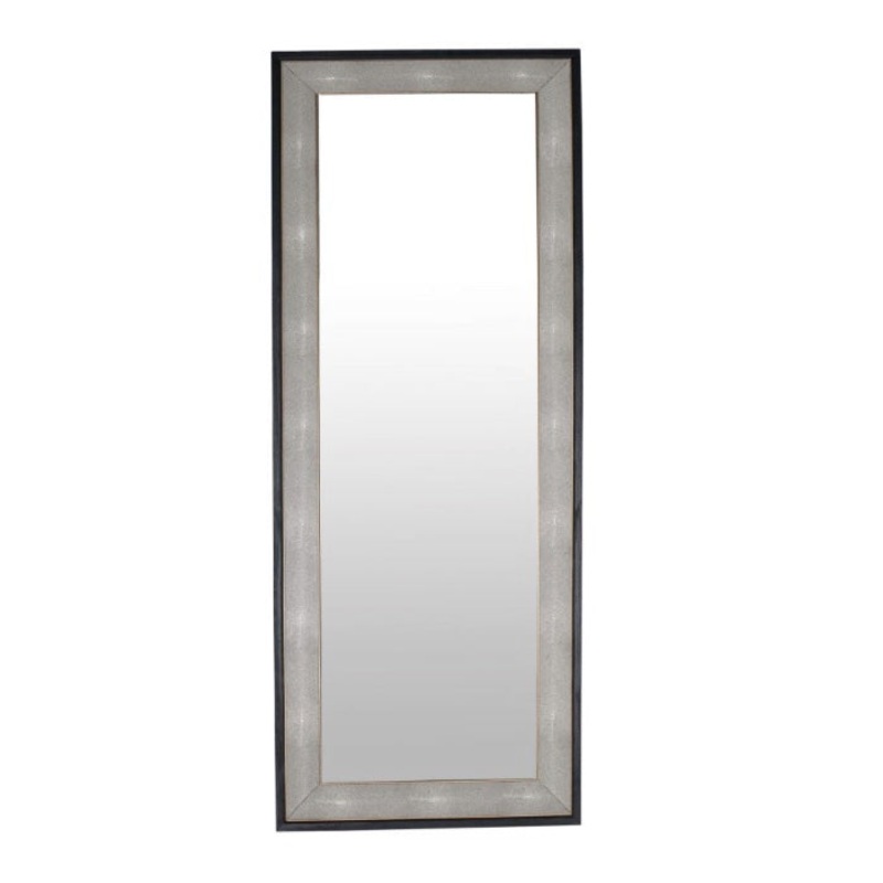 Feeling for the timeless glamor of art deco with a modern twist? Meet the Mako collection. With each item upholstered in the highest quality vegan leather shagreen, the Mako collection brings effortless style, visual texture and substance to your living space. A reflection of good things to come, this contemporary modern mirror features a black oak frame with gold trim around the edges. Elegance, depth and simplicity are what defines the Mako collection as a true modern classic.