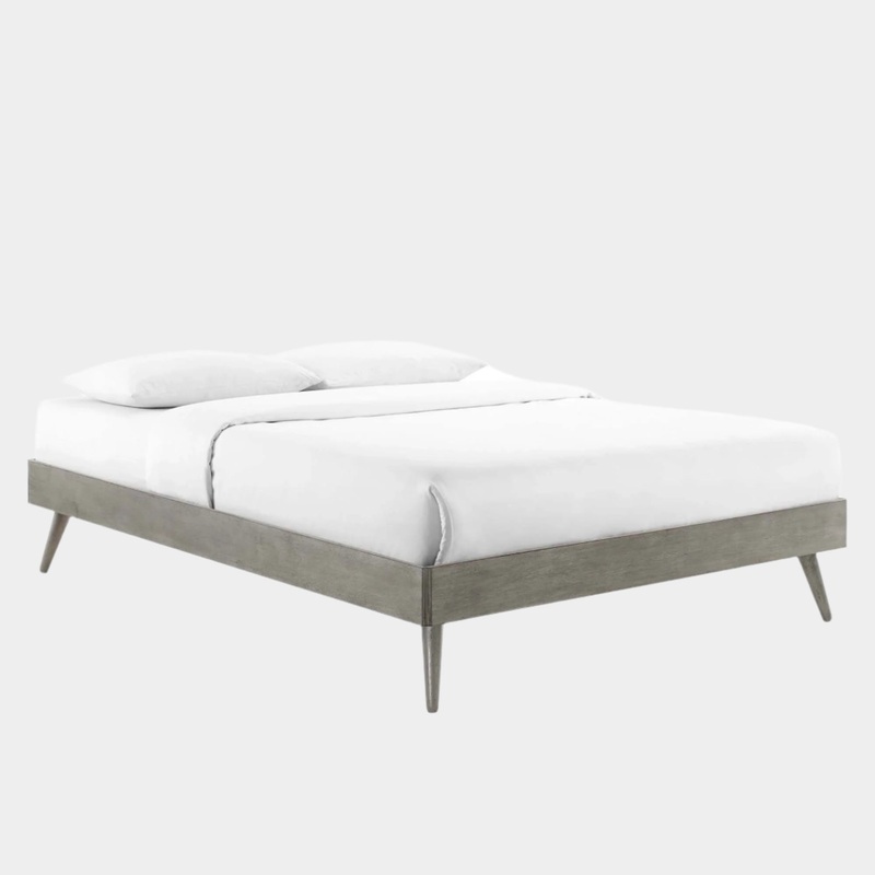 Incorporate modern style and comfortable sleep in the bedroom with the Margo Twin Platform Bed. Inspired by mid-century design, this twin size bed frame boasts retro detail with contemporary accents and organic aesthetics to bring trending modernity to your guest bedroom or kid’s bedroom. Adapting to any decor theme with the option of interchangeable headboards, this bed frame is compatible with the Robbie, Draper, Archie, and Collins headboard collections. This platform bed frame is a sturdy addition to the bedroom with a durable wood, MDF, and veneer construction and four splayed rubberwood legs. Eliminating the need for a box spring, this twin bed is complete with a wood slat support system, reinforced center beam, and supporting legs that make it a lasting mattress foundation for memory foam, latex, innerspring, and hybrid mattresses. Assembly required. Twin Bed Frame Weight Capacity: 601 lbs.