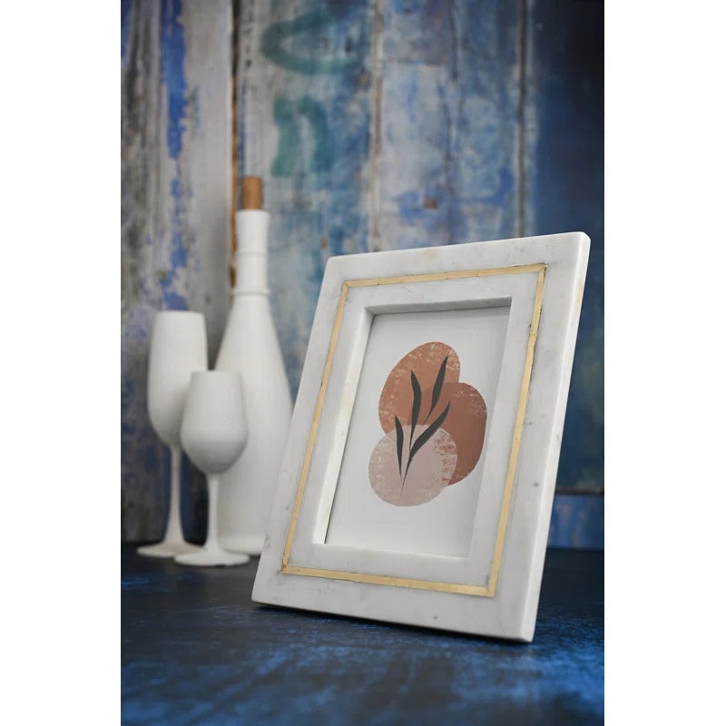 Showcase your favorite photos and glam taste with this luxe marble picture frame. It's rectangular and made of real white marble, so it has a nice weight. The frame has an inlaid line of brass finish trim for a little extra flair. We love that you have the