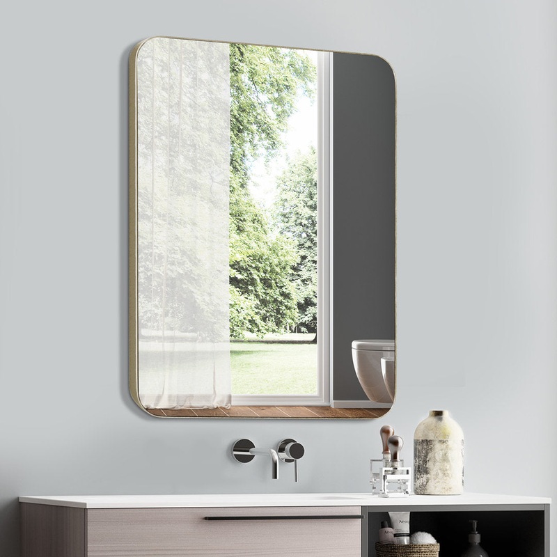 Crafted with a metal frame. Hand-polished edges ensure safety and beauty. Orren Ellis Size: 30″ x 22″, Finish: Light Champagne