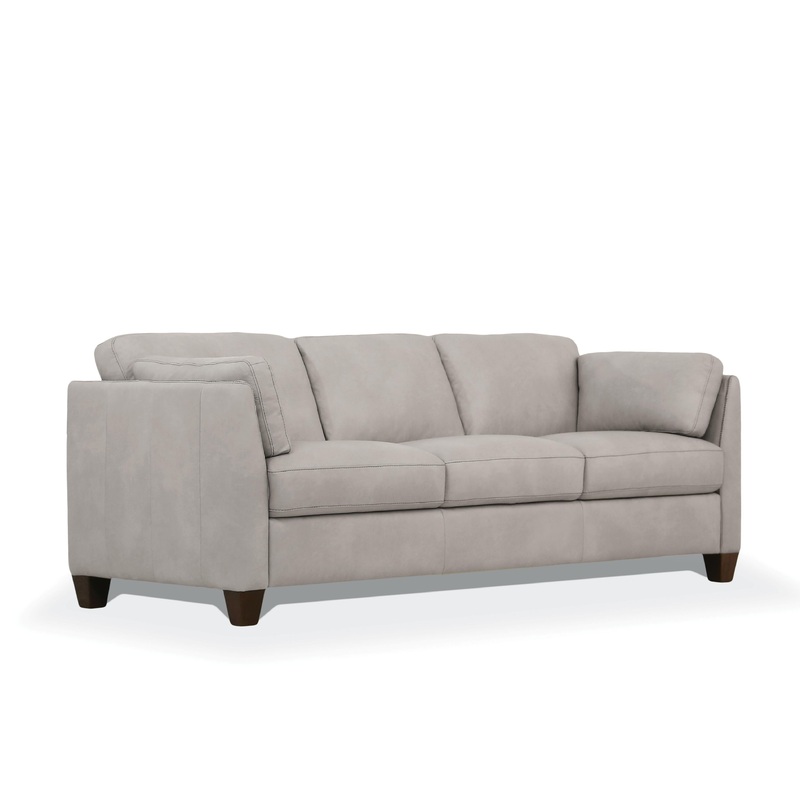 ACME Matias Sofa, Dusty White Leather, 81″L x 34″D x 31″H, 121lbs. The Matias sofa set is one you-ll want to spend lots of time in. This beautiful dusty white or chocolate leather sofa features contrast tone stitching and unique wooden block legs. Its deep, comfy seat and sloped style padded arms with pillow give it an incredible sink-right-in quality that-s perfect for the whole family. Features: – Made in Italy – Material: Leather – Loose Back & Tight Seat Cushions – Construction: Webbing Seat, Wooden Inner Frame – Sloped Armrest – Wooden Block Leg: Dark Walnut – Collection Matias: Available in 2 Colors Materials: Upholstery, Wood Leg