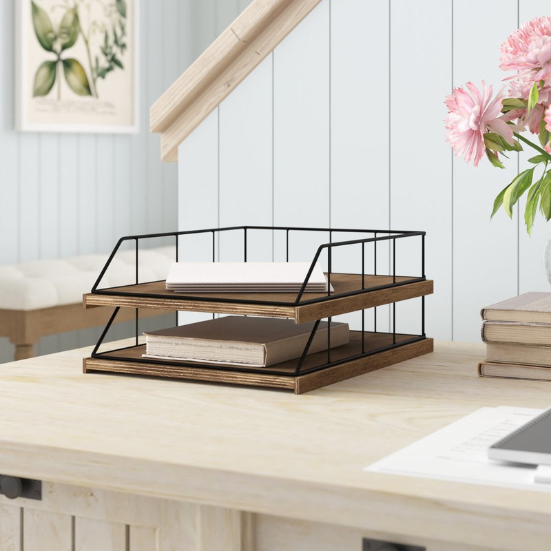 Organize your paper and file folders out of a pile and into a clean organized space with Mccaslin Wood And Metal File Organizer. These desktop letter trays can be used side by side or stacked. Bring organization and modern decorative accents to your home w