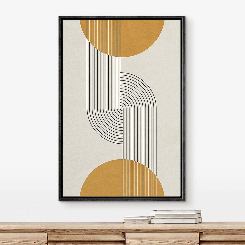Mid Century Modern Boho Dark Line Art Illusions With Yellow Spheres – Graphic Art on Canvas IDEA4WALL Frame Color: Black Size: 24″ W x 36″ H