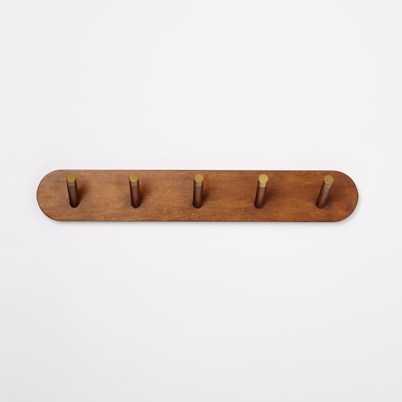 Size: LargeA warm acorn finish and antique brass details add mid-century style to this handsome coat rack.Solid wood in an Acorn finish.Aluminum details in an Antique Brass finish.Sold individually.Imported.