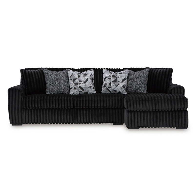 Sink into style with the Midnight Madness 2 Piece Right Chaise Sectional. Soft corduroy polyester and high-resiliency cushions create an ultra-cozy experience. Right-facing chaise, reversible seat cushions, and included accent pillows make this sectional a