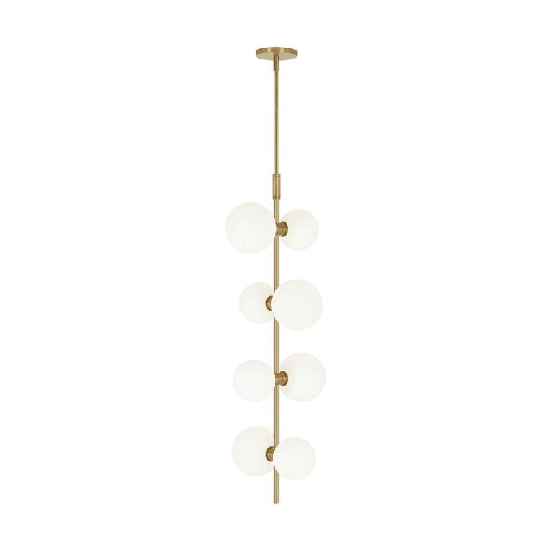 The Aged Brass ModernRail Pendant by Sean Lavin for Tech Lighting showcases the sophistication of ModernRail but with all of the simplicity of an elegant pendant. This Aged Brass ModernRail pendant features optional frosted opal glass globes or cylinders that gracefully wrap around the center rail allowing light to illuminate generously into surrounding spaces. Scaling at 3″ in length and 12″ in diameter this gorgeous pendant is ideal for hallways, foyers and bedrooms. The integrated LED globes or cylinders are fully dimmable to create the desired ambiance in your unique space. With its classic Aged Brass finish and uniquely crafted design the ModernRail Pendant light is sure to add a touch of sophistication to any space.Ships with (8) 24 volt, 3 watt, 44.2 total watts, 1430.3 total delivered lumens) 3000K, integrated LED modules. Dimmable with most LED compatible ELV and TRIAC dimmers. Ships with (2) 6″ stems and (4) 12″ stems in coordinating finish. Remote Power Supply version T24.Elegant ModernRail style in a convenient pendant sizeClassic Aged Brass finish adds charm and styleCustomizable using frosted opal glass globes or cylindersIdeal for both residential and commercial applicationFully dimmable integrated LED light source1-year warranty with no lamping option. 5-year warranty with LED lamping optionColor: BrassStyle: Modern/ Industrial/ ContemporaryFinish: Aged BrassMaterial: Metal