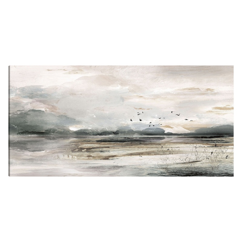 Aptly titled Morning Wall Art, this beautiful iteration of an ocean morning will add an idyllic atmosphere to any space you hang it. Cool neutral colors allow this lovely piece to blend in with nearly any decorative style. With a breadth of 40", this piece