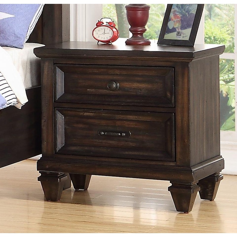 Sevilla Youth Collection by New Classic FurnitureDistressed Walnut finishAcacia solids and oak veneers 5 pc English dovetailed drawers Full extension drawer glides Finished drawer interiors Felt lined top drawers USB charger 2 Drawers