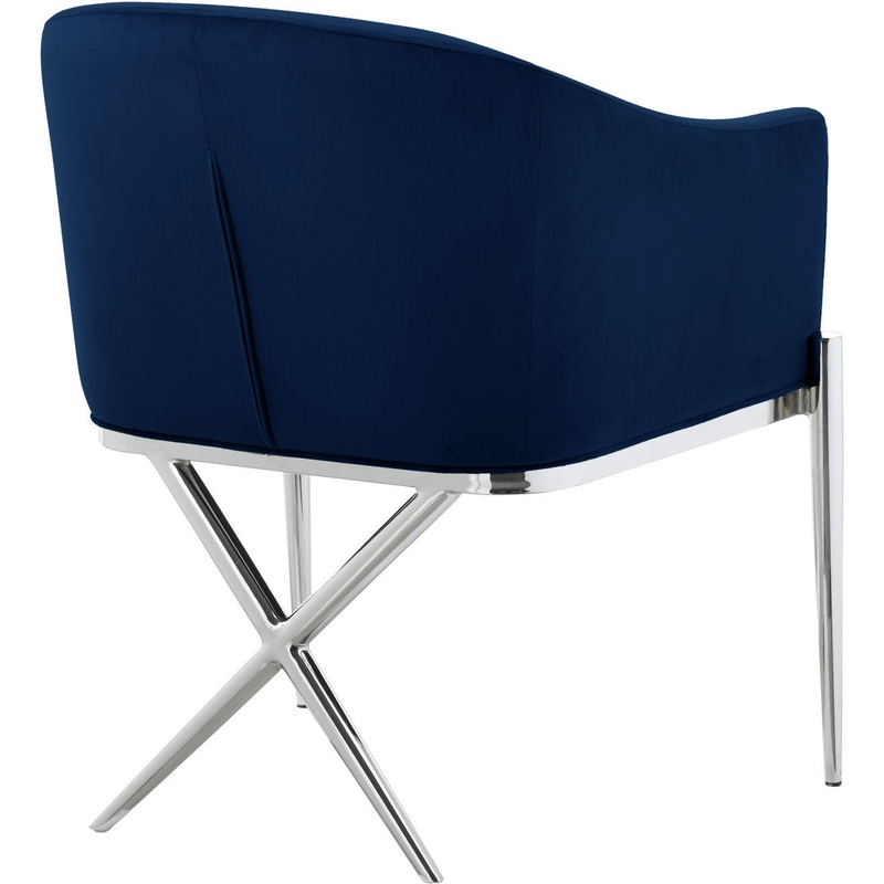Spread elegance and modernity to your dining room with this Xavier velvet dining chair from Meridian Furniture. This beautiful chair features a simple barrel seat with a plush cushion and back, ensuring that every meal is a comfortable one. The steel legs