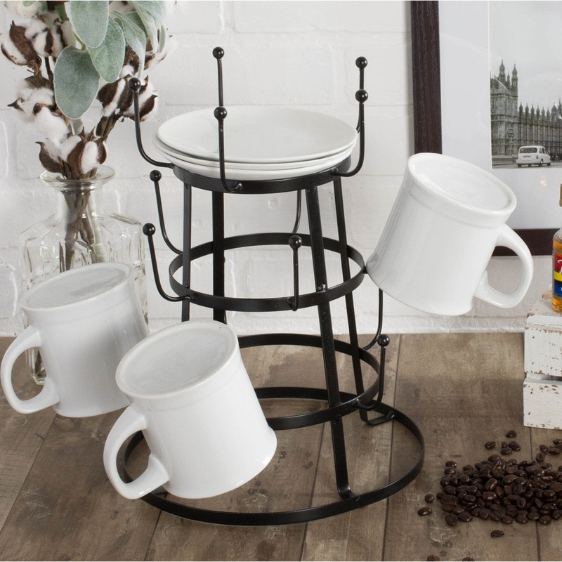 This 3-Tier Countertop / Pantry Distressed Vintage Metal Wire Tree Stand will organize your kitchen while adding beautiful style. Crafted of metal with an antiqued finish for a vintage look, this 3-tier mug rack will please with its stylish yet functional appearance, adding farmhouse dcor to your kitchen while also providing a storage solution for mugs and glasses. Available in 3 different color options, Black, White, and Rustic Bronze, the White Mug Stand is distressed for added style. Our rustic-looking wire tree stand even has a new design that ensures the cups on the bottom tier do not touch the countertop. Organize your space for a clutter-free kitchen! If you live in an apartment or have a small kitchen with limited counter space, no worries! This can display and hold up to 15 mugs! You can carefully place your hand-washed mugs on the stand to dry. Not only will this mug stand give you plenty of space to store your coffee and tea mugs, but you can also keep small dessert plates stacked on top, held in place by the metal arms. Free up counter space while adding convenience and serving guests coffee, tea, and sweet desserts. Rebrilliant Finish: Black