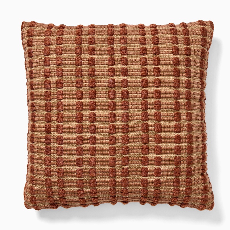 20"sq.Shell: 100% polyester.Fill: Contains 100% GRS certified recycled polyester. Bureau Veritas TE-BVUS0027.Handwoven.Pattern on both sides.Indoor/outdoor.Water-resistant.Pre-filled; cover isn't removable.Made in India.