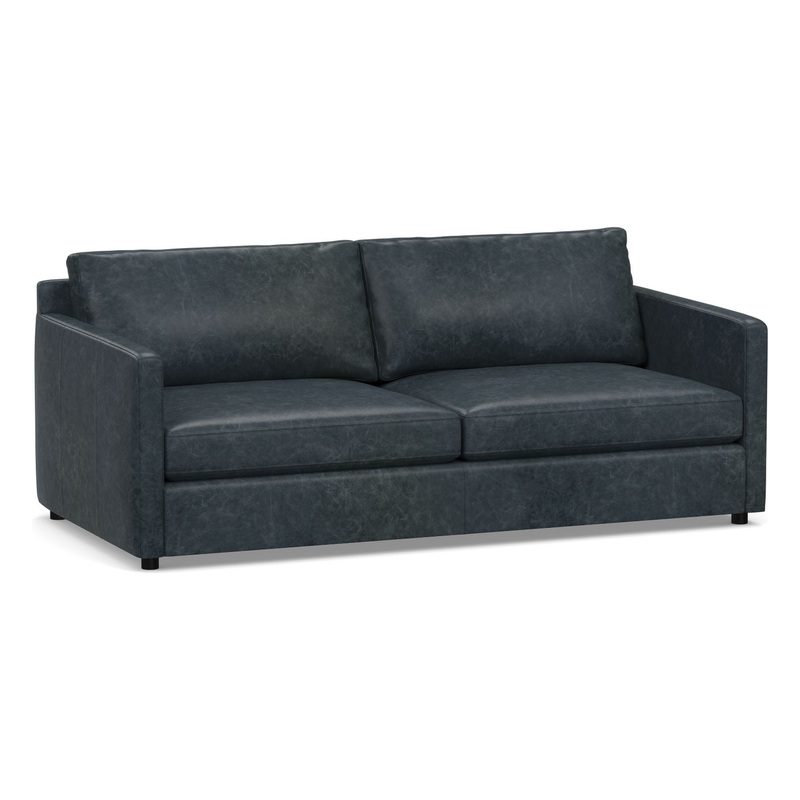 CONSTRUCTIONSquare arm.Round removable legs have a black finish.Polyester-wrapped cushions for a firmer feel.No-sag steel sinuous springs provide cushion support.Loose cushions.Corner block, kiln-dried engineered wood frame provides exceptional structural integrity.Kiln-dried wood helps prevent warping, splitting, cracking and developing mildew.QUALITYTop-grain leather, aniline-dyed. Leather will lighten and soften with both use and time and develop a rich patina.Leather is a natural product. Variation in color and texture are inherent to each hide; no two pieces are exactly alike.Imported.CARENever use detergents, polishes, preservers or saddle soap. They can remove natural oils.Dust or vacuum for routine maintenance.Do not place in direct sunlight; it will lighten or discolor leather over time.If spills occur, immediately soak up any liquids with an absorbent cloth and allow to air dry. Thorough cleaning by a leather specialist only.Most surface scratches will fade over time if you rub them with your fingertips. Friction and heat from rubbing helps to redistribute wax in surrounding areas to cover the scratch. Not all scratches have the same depth, and this may not work on deeper scratches.Our leather upholstered products are constructed from semi-aniline leather. The full-grain or top-grain leathers are soaked in transparent dye, with no subsequent pigmented finish coats applied. Dye penetrates the hides, letting the natural grain show through.Semi-anilines have natural markings that vary from hide to hide. They also have color variations due to the leathers ability to accept dyes differently in various areas of a hide. Markings and shading distinguish genuine leather from man-made materials. Appreciating shade differences among hides also means appreciating them on individual furniture pieces, because no two pieces can be produced from a single hide.Learning to care for your leather prolongs the life of your furniture, see our Leather Care Card.ASSEMBLYWhite Glove Service: Items are delivered to your room of choice by appointment, then unpacked and fully assembled by a skilled two-person team. Includes packaging removal and recycling. Fee varies by location and order total.To ensure this piece is the right fit, see our How To Measure Guide. If you need help, our Design Crew is happy to answer any questions virtually or in your home. Book an appointment.
