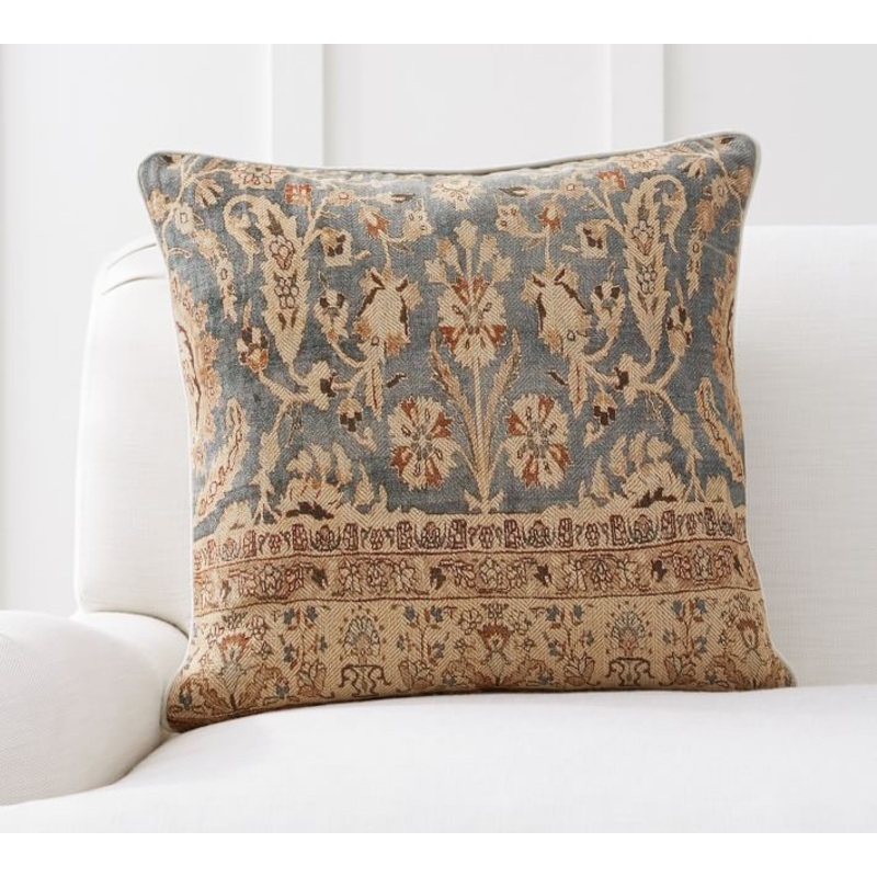 Inspired by an antique rug and woven of a special linen/cotton blend, this pillow cover grounds your sofa, bed or armchair in warm color, soft texture and regal style.