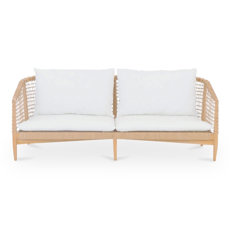 Embrace the essence of Panamanian craftsmanship with our stunning Lloyd Loom design, harmoniously paired with a contemporary teak wood frame. Over time, this exquisite teak transforms into a rich patina, creating an even more captivating contrast against t