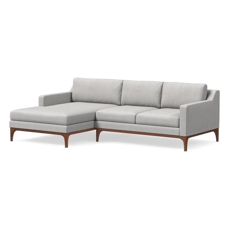 Hand-built frames with hand-finished upholstery.Engineered wood frame and legs in a Cool Walnut finish.All wood is kiln-dried for added durability.High-gauge sinuous springs provide cushion support.Seat cushions have fiber-wrapped, high-resiliency polyuret