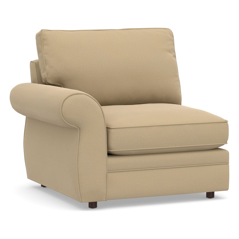 One of our most welcoming collections, Pearce has a livable design and universal appeal. The generous arm, deep seat, and comfy down-blend cushion make this a family room favorite for lounging. We love the transitional look, which sits well in any space.Roll arm.Removable legs are cylindrical and finished in Espresso.Seat cushions are loose.Down-blend-wrapped cushions for a softer feel. Back cushions are 100% polyester fill.Left- or Right-Arm Recliner is electric and requires a power source for plug in cord. Recline buttons are on interior side of arm.Hardwood frame with mortise-and-tenon joinery provides exceptional structural integrity.No-sag steel sinuous springs provide cushion support.Hidden steel connectors hold modular pieces securely together.Adjustable levelers provide stability on uneven floors.Please note: fabric dye lots may vary slightly. To guarantee best match, we recommend ordering all sectional pieces at the same time.Choose components to Build-your-Own sectional with: Left- or Right Arm Chair, Armless Chair, Left- or Right-Arm Chaise, Left- or Right-Arm Double Chaise, Left- Or Right Arm Loveseat, Armless Loveseat, Left- or Right-Arm Loveseat Sleeper, Left- or Right-Arm Recliner, Left- or Right Arm Bumper, Armless Sofa, Left- or Right Arm Sofa, Left- or Right-Arm Curved Chaise, Wedge and Ottoman.To ensure this piece is the right fit, see our How To Measure Guide.Crafted in America by our own master craftsman. American and imported materials