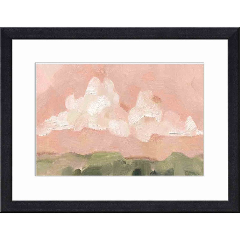 Reminiscent of abstract artwork, this painting print brings swirls of stunning color to your walls. Designed by Emma Scarvey, it features a bright peach-hued sky at sunset with subtle clouds in white and green brushstrokes at the bottom for a soothing coas
