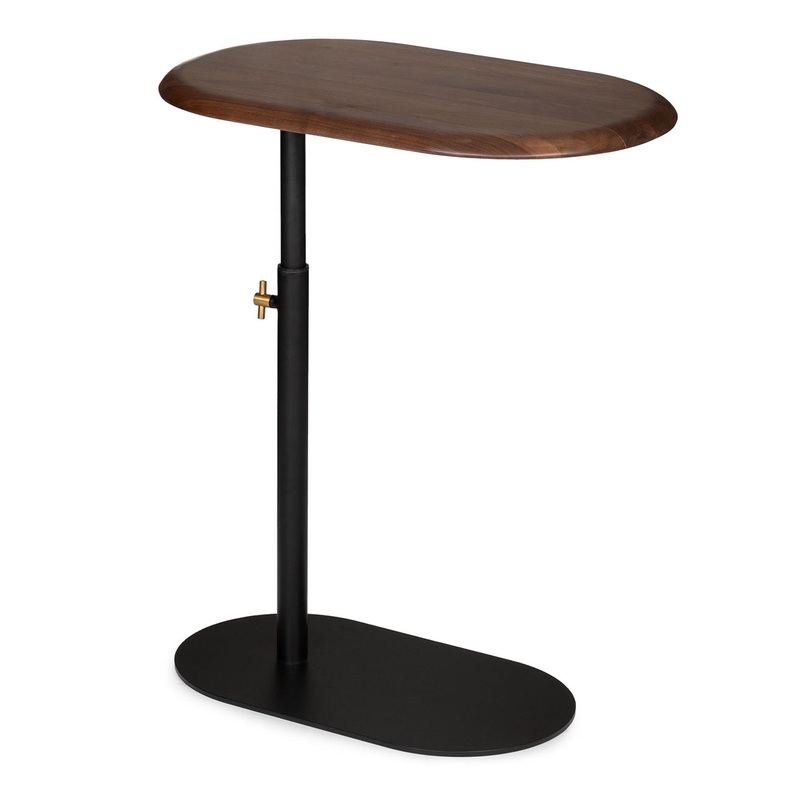 DescriptionWith its adjustable height, the Portima Side Table is always exactly where you need it. Crafted with a solid wood top big enough to hold a standard laptop, the Portima is also perfect for keeping your after-work refreshment of choice at arms length. Plus, the slim yet sturdy powder-coated steel base slides conveniently under your sofa or chair so you can bring everything a little bit closer if needed.FeaturesAdjustable table height with a solid brass handleConstructed of solid wood and powder-coated steelSmall cracks and fissures may develop with changes in humidity and temperature. This is a natural, uncontrollable characteristic of solid wood furnitureNo assembly required