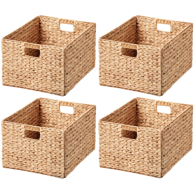 This set of wicker baskets clears clutter from your space and replaces it with a naturally organized look. Each rectangular bin is woven in a rattan style from water hyacinth that gives your room a boho vibe. All four pieces are the same size, measuring ju