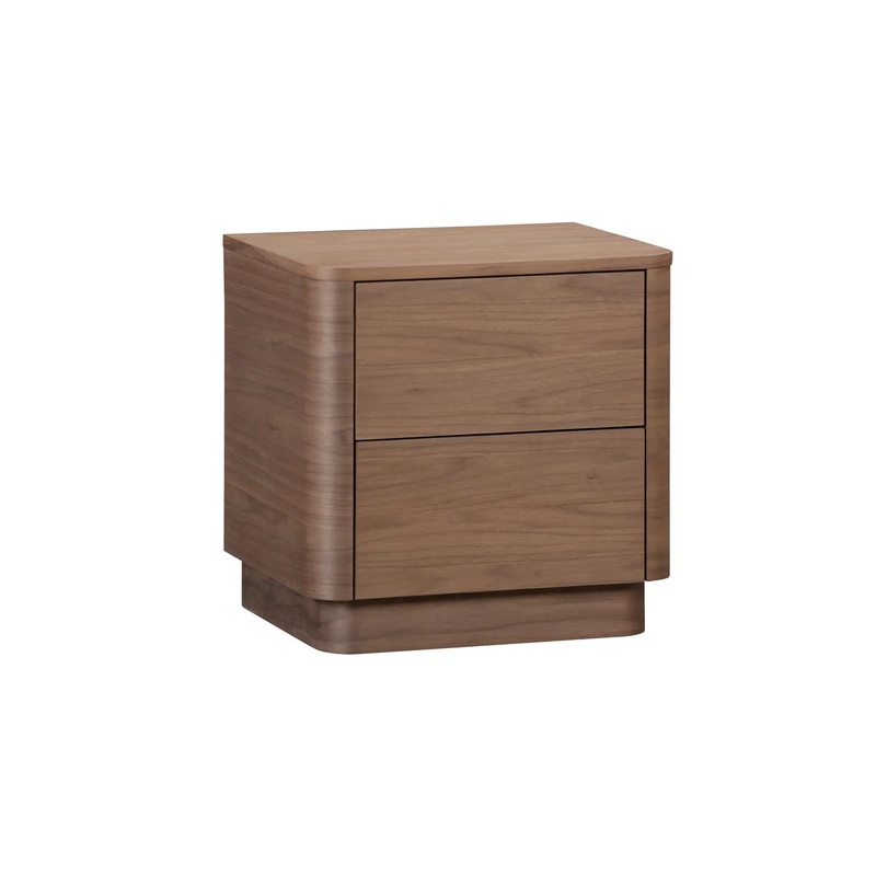 Natural allure meets minimalist design. The Round Off tall nightstand celebrates the captivating tones of natural wood grain, seamlessly integrated into a soothing design, embracing natural beauty and character. This tall nightstand boasts gently rounded corners and two large, push to open, smoothly gliding drawers that reveal generous storage space while embracing walnut’s natural beauty and character.