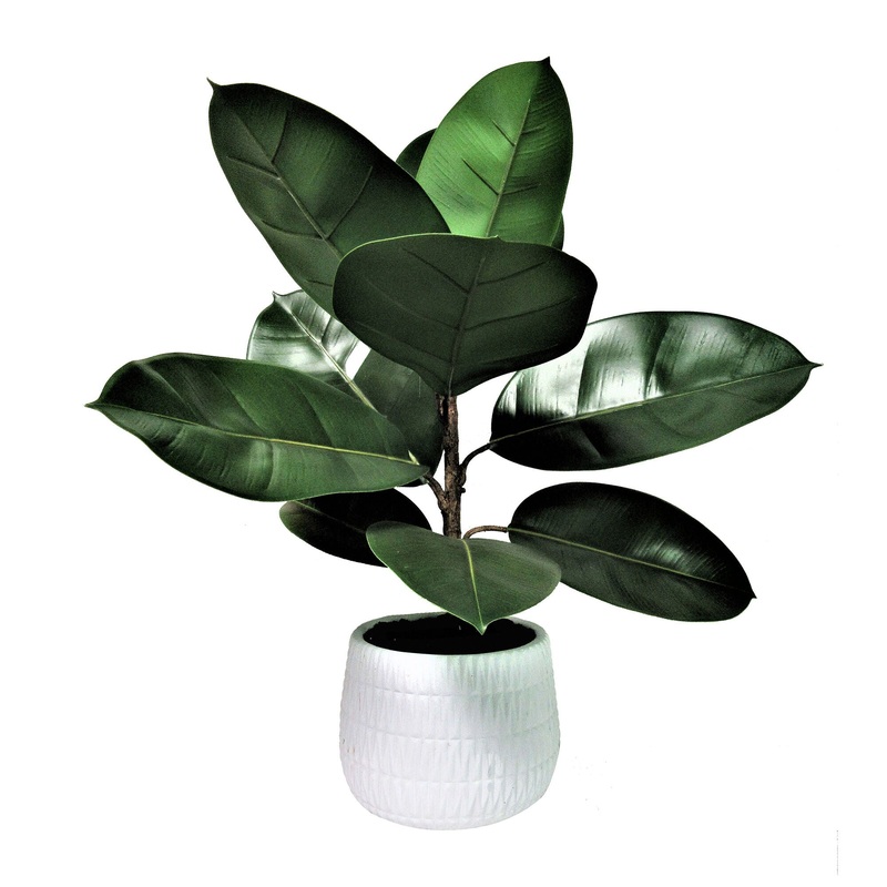 The Rubber Plant in a 22 Inch Textured Pot brings deep green tones and modern shape into any space. Pre-assembled and easy to care for, this lifelike artificial plant is housed in a textured pot that adds visual interest and a touch of earthiness. Its the