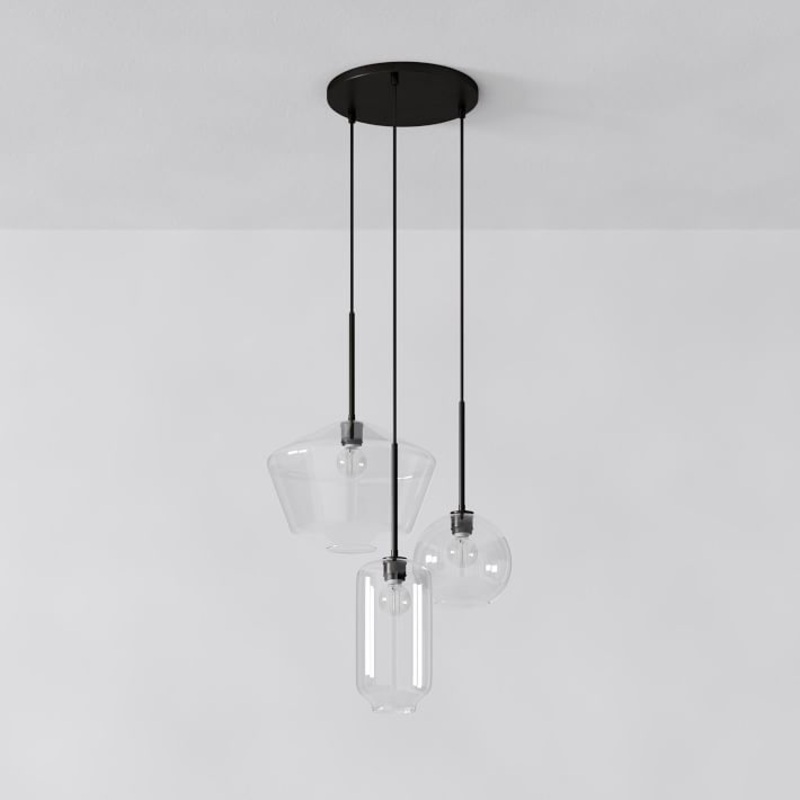 Sculptural 3 Light Chandelier Dark Bronze Clear Glass Mixed