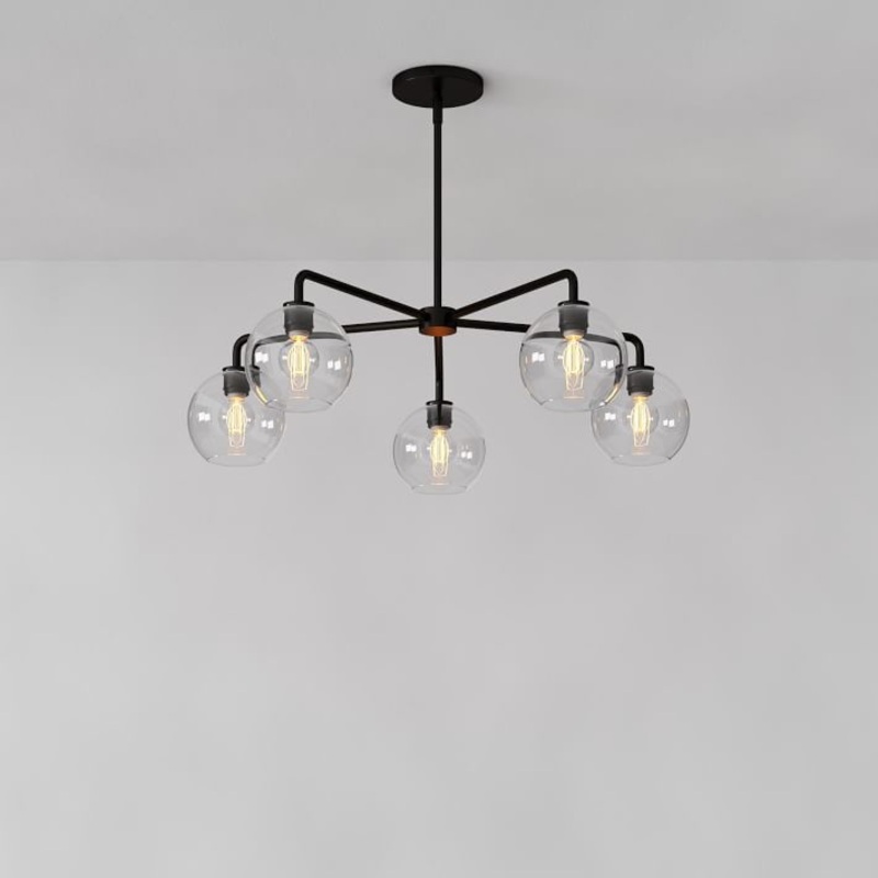 Create lighting with a custom feel with our Sculptural Glass Globe 5-Light Chandelier. In a range of finishes, it’s just the thing to add illuminating intrigue to your hallway, entryway or dining room.
