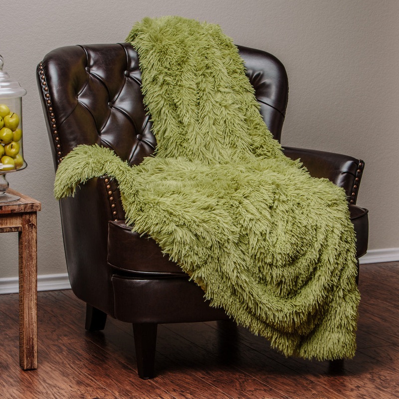 Shaggy Shaggy Super Elegent Sherpa Long Fur Throw Chanasya Color: Green Size: 50″ W x 65″ L