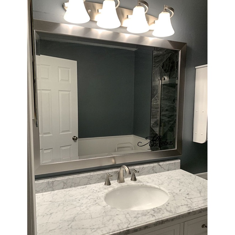 Shmuel Wood Framed with Safety Backing Ideal for Bathroom / Vanity Mirror Wade Logan Size: 36″ x 48″ Finish: Antique Satin Nickel