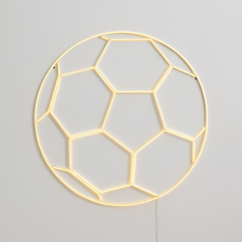 Show your sporty spirit with our neon light, sized large for outsized impact. Featuring a soccer balls distinctive geometric silhouette, the glowing white fixture creates a fun focal point on your wall while brightening your bedroom with LED bulbs.KEY PROD