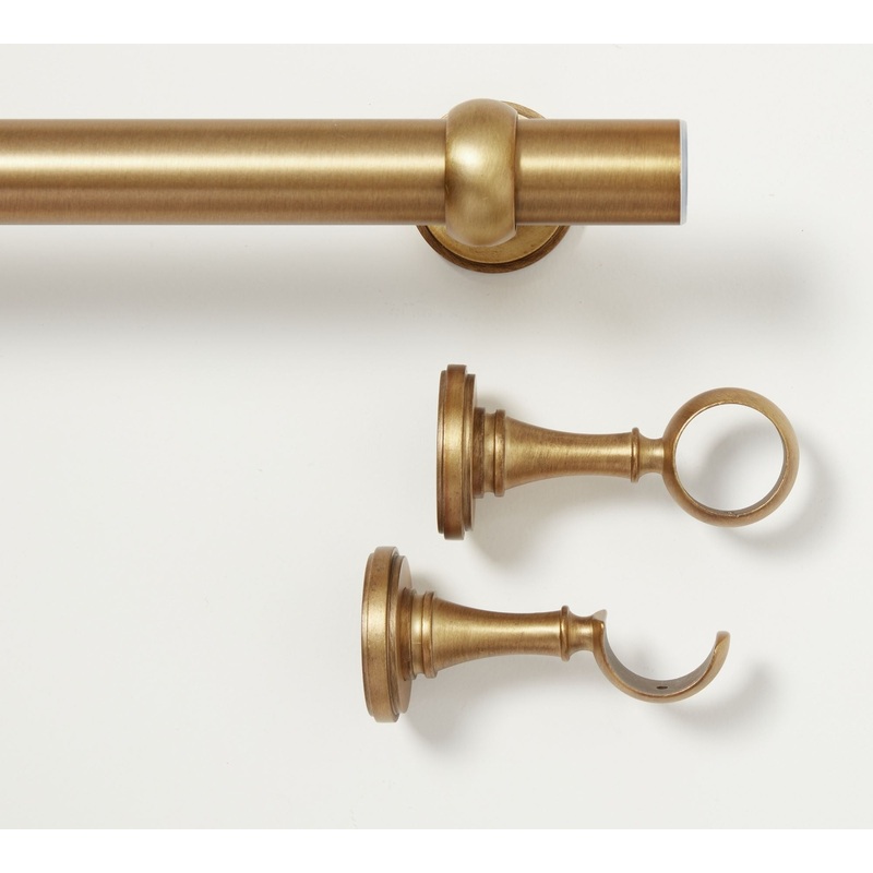CONSTRUCTIONRod is made of steel with a Burnished Brass or Satin Iron finish.Rod available in 1.25" diameter.Imported.CAREWipe with a dry or slightly damp soft cloth.To protect finish, avoid the use of household cleaners or abrasives.ASSEMBLYMounting hardw