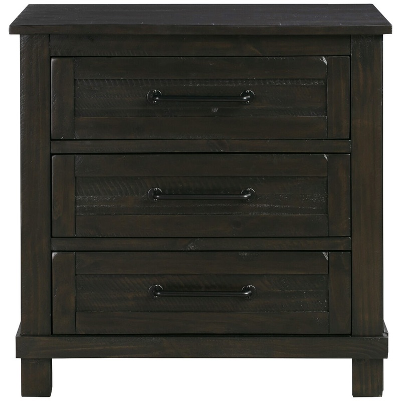 With its distinct charcoal finish and rustic style, the Sun Valley Desk Chest has a natural character that will be the highlight of your bedroom. The ample drawer space is perfect for additional storage. Like the unit itself, the industrial handles have a