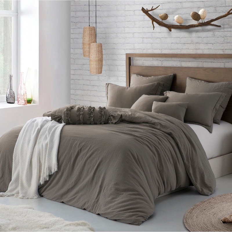 Super Soft Crinkle Washed Microfiber Duvet Cover Set Swift Home Color: Driftwood Size: Full/Queen Duvet Cover + 2 Pillowcases