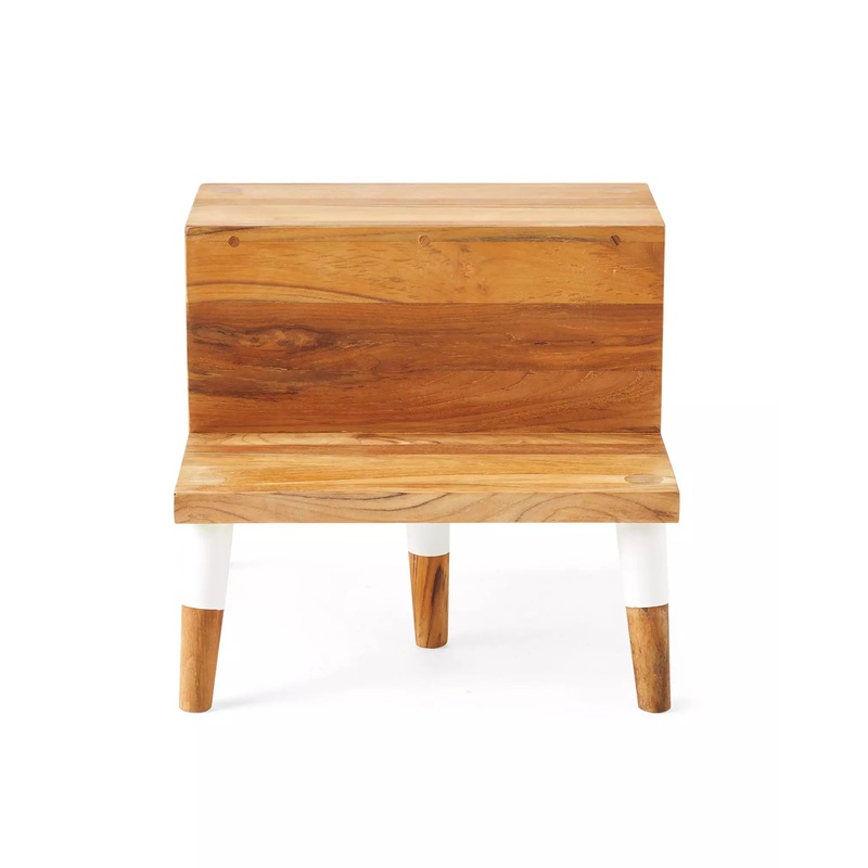 The two step.Painted legs provide whimsy to this practical piece. An aid for kids to access out-of-reach items or climb into bed. It doubles as a charming shelf for bath essentials or plants.