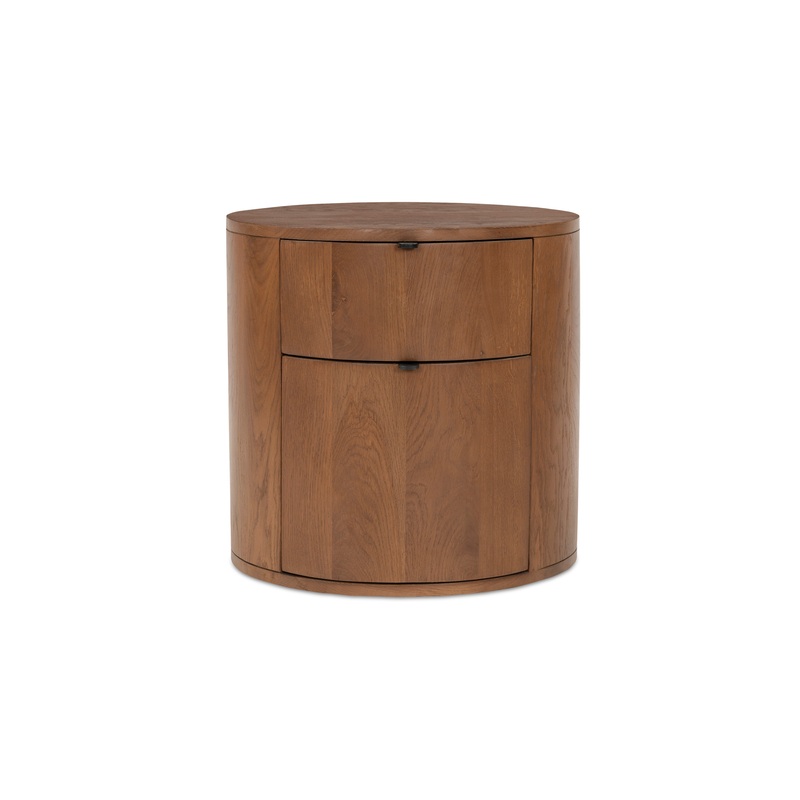 Full of natural appeal in solid oak, the Theo two drawer nightstand features a curved, minimalist design. Beautifully simple and functional, this nightstand features 2 drawers with soft-close glides and drawer safety stop.