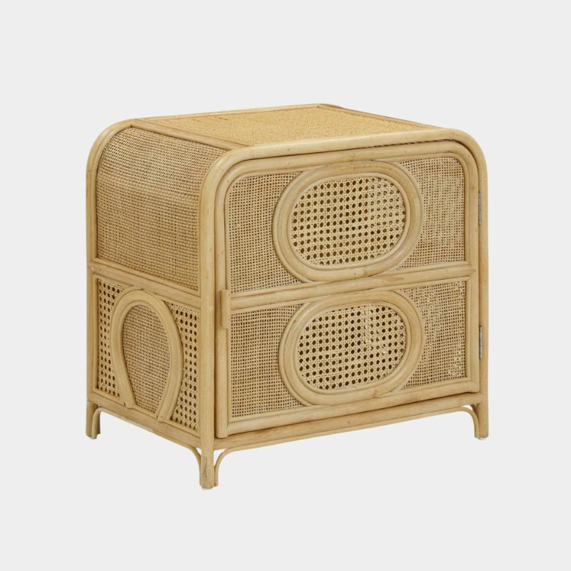 Description:Introducing the Tina Natural Rattan Nightstand, where the charm of natural raw rattan and cane combines to create the ultimate earthy, Boho vibe. This piece features mixed styles of cane and a rounded, arched shape that's utterly trendy and per