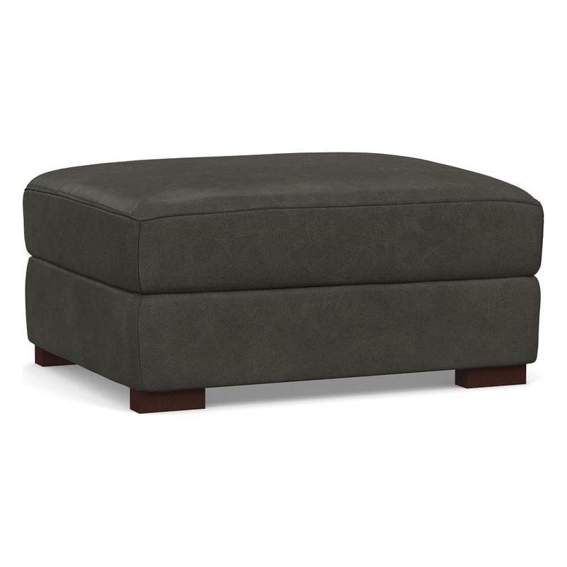 Comfort meets quality. With its high back, thick arms and down-filled cushions, Turner is one of our most comfortable seating collections. Choose from over 20 supple top-grain leathers, and from dozens of sofa, chair and ottoman silhouettes, and with or without nailheads.Polyester-wrapped ottoman for a firmer feel.Corner-blocked, kiln-dried hardwood frame with main joinery provides exceptional structural integrity.Kiln-dried wood helps prevent warping, splitting, cracking and developing mildew.Interwoven synthetic webbing strips provide cushion support.Features attractive nailhead accents.Removable legs feature a Dark Brown Walnut finish.Top grain leather, aniline-dyed leather will lighten and soften with both use and time and develop a rich patina.Leather is a natural product. Variation in color and texture are inherent to each hide; no two pieces are exactly alike.Imported.Never use detergents, polishes, preservers or saddle soap. They can remove natural oils.Dust or vacuum for routine maintenance.Do not place in direct sunlight; it will lighten or discolor leather over time.Dab spills immediately with a soft white cloth dampened in a water solution (3 parts water, 1 part gentle soap). If spill penetrates leather, use lukewarm water and a soft white cloth to massage stain and surrounding area. Blot with a dry cloth and allow leather to air dry.Most surface scratches will fade over time if you rub them with your fingertips. Friction and heat from rubbing helps to redistribute wax in surrounding areas to cover the scratch. Not all scratches have the same depth, and this may not work on deeper scratches.Our leather upholstered products are constructed from semi-aniline leather. The full-grain or top-grain leathers are soaked in transparent nontoxic dye, with no subsequent pigmented finish coats applied. Dye penetrates the hides, letting the natural grain show through.Semi-anilines have natural markings that vary from hide to hide. They also have color variations due to the leathers ability to accept dyes differently in various areas of a hide. Markings and shading distinguish genuine leather from man-made materials. Appreciating shade differences among hides also means appreciating them on individual furniture pieces, because no two pieces can be produced from a single hide.