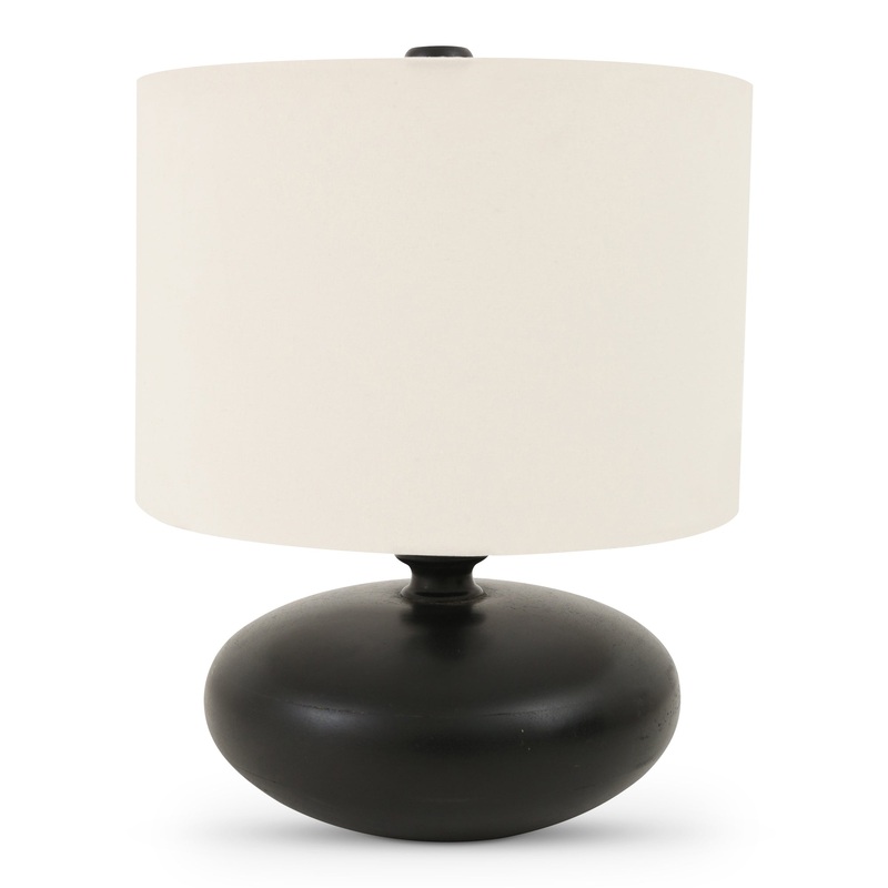 Elevate your space with our Vintage-Inspired Mango Wood Table Lamp. This beautifully crafted piece showcases an organic, turned wood base finished in a sleek black hue and a textured cotton shade. The spherical shape of the lamp adds a touch of vintage cha